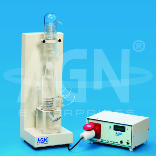 - Features a high-purity quartz boiler with a built-in heater and bottom discharge joint for easy cleaning of deposits. A spiral condenser is fitted on the boiler along with a receiving adapter. An optional safety control unit protects the glass parts in case of water failure or overheating.